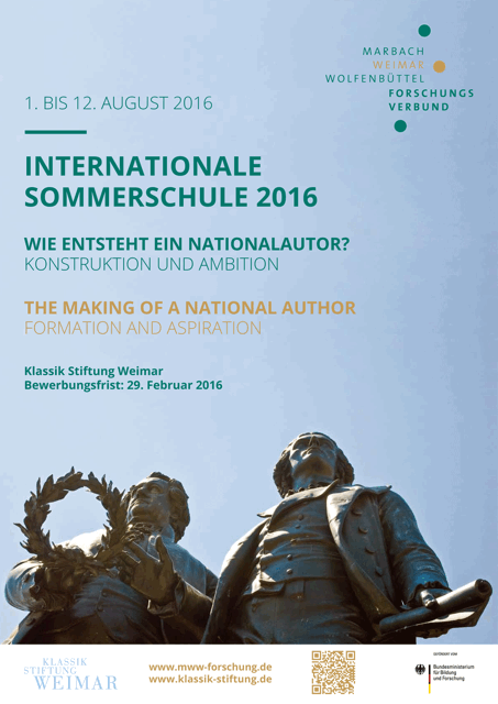 Zwei Wochen lang, vom 1. bis zum 12. August 2016, fand die Internationale Sommerschule von MWW in der Klassik Stiftung Weimar statt. 20 Stipendiatinnen und Stipendiaten aus zehn verschiedenen Ländern diskutierten mit Wissenschaftlerinnen und Wissenschaftlern aus Frankreich, Japan, Russland, Deutschland und der Schweiz über die Frage "Wie entsteht ein Nationalautor? Konstruktion und Ambition".